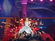 The encore begins with an instrumental intro dubbed "Million Dollar Mermaid", which featured projections of synchronised swimmers; this leads into a new remix of "On a Night Like This", which featured water jets, and leads into the final song, "All the Lovers"; this used the cake-lift and more water jets.